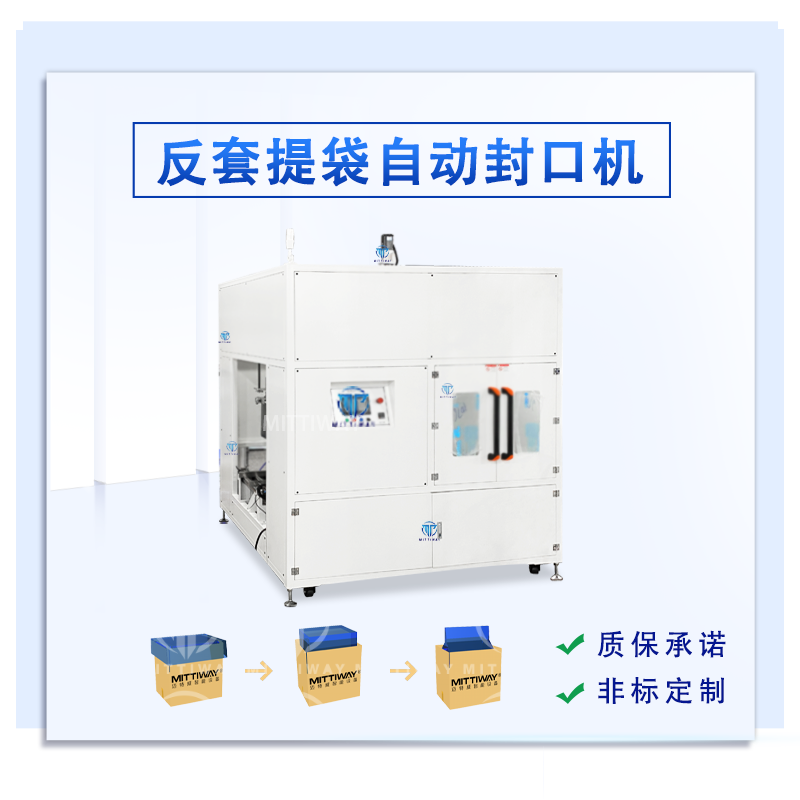而纸箱自动提袋封口机是和套袋机配套使用的,在装完产品后自动给袋子封口;封口牢固,效率高,稳定性强;