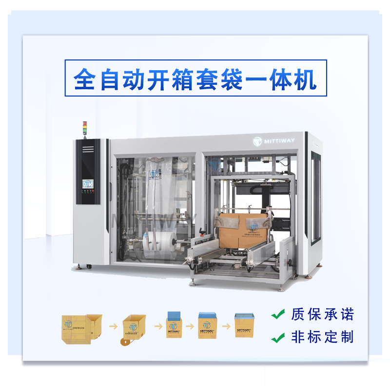 ● 全自动开箱套袋一体机 MTW-MT540本机设计以操作简单、经济耐用、安全、故障率低为主;