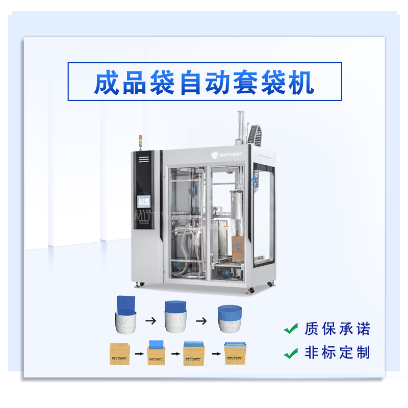 该款套袋机主要针对容器内部套成品袋或者预制袋而设计,解放人工,实现自动化;